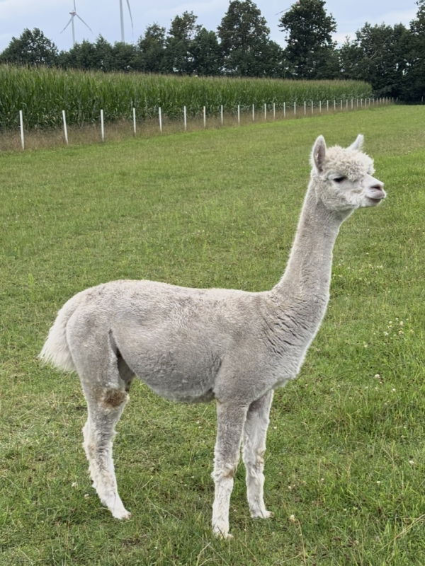 Snow Whites Mutter ist unsere Zuchtstute ELAB Leni. Sie ist eine große Stute mit einem korrekten Körperbau. Ihr Vlies ist enorm dicht und fein, was wir uns auch bei Snow White erhoffen. Ihr Vater ist unser leider verstorbener Deckhengst FAL Peruvian Amadeus. Sein Vater ist kein geringerer als der berühmte Ausnahmehengst Accoyo Amando. Er führt seit Jahren unangefochten das Zuchtbuch des AZVD an und ist mit Gold prämiert.
